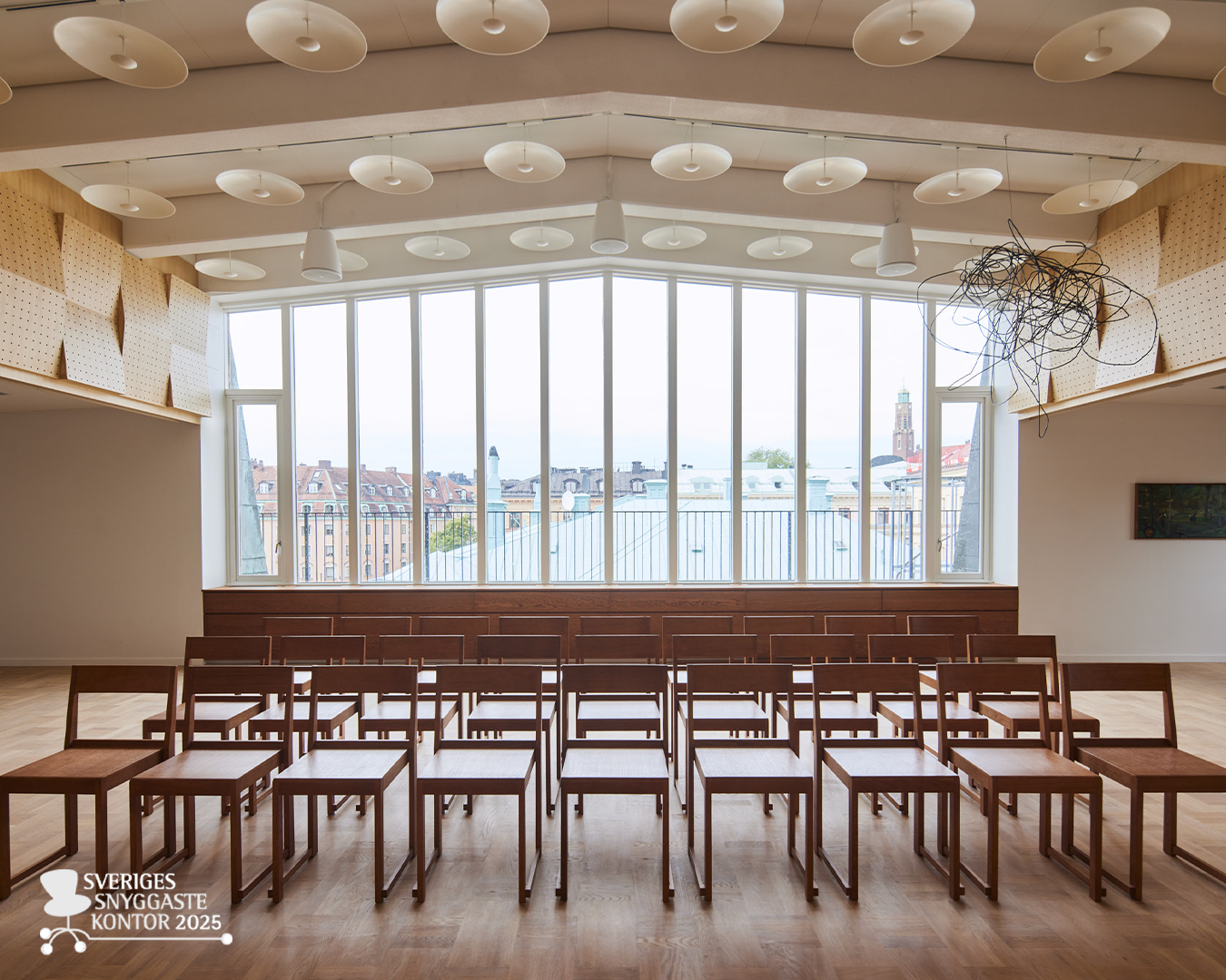 Natur & Kultur is nominated to “Sveriges Snyggaste Kontor 2025”! Vote for your favourite. The headquarters of Natur & Kultur on Karlavägen 31 in Stockholm is an architectural landmark, designed by Sven Markelius for Skogsindustrierna in 1959. Over the years, the building had lost much of its original character due to successive renovations, while no longer meeting modern requirements for workplace functionality and flexibility. The result is a modern workplace where the iconic 1950s design language harmonizes with today’s functional and technical demands.