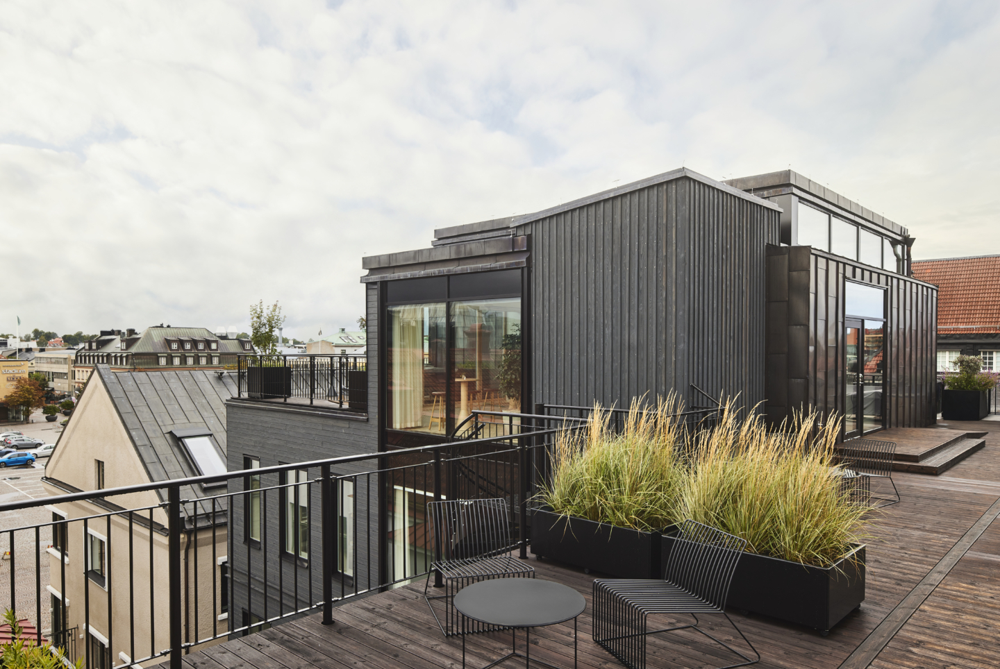 • Redeveloping a dated 1980s building in a sensitive historic context next to Växjö Cathedral.
