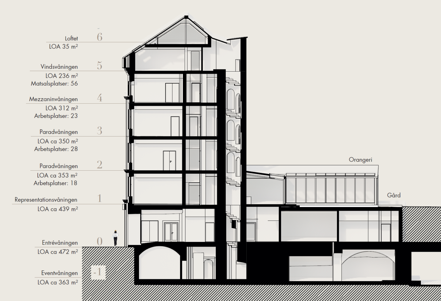 By working with the architectural legacy of each floor, Studio Stockholm based the conceptual idea on a variety of environments with distinct characters; from preserved vaults to spacious meeting rooms, a new rooftop terrace, and a communal orangery for gatherings. The project involved careful renovation to preserve what already existed, while also innovating to transform the space into a modern office that meets both today’s and future demands. All within a unified and cohesive concept – Petit Palä, which translates to ‘the little palace.’