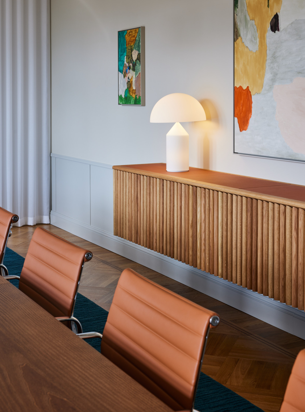 Studio Stockholm was commissioned to design the interiors for Investor, Sweden’s leading investment company, headquartered in a historic property in the heart of central Stockholm’s business district. The assignment required a sensitive approach that both preserved the mystique and long-term legacy surrounding the company and created an attractive, contemporary workplace that appeals to top talent while reflecting Investor’s role as a driver of Swedish innovation. The concept was grounded in a distinctly Swedish narrative, where the design embodies both the nation’s industrial heritage and its forward-looking culture of innovation, ensuring an environment that resonates with global visitors and local talent alike. Through this narrative, Studio Stockholm developed an environment that respects tradition and embraces the future.