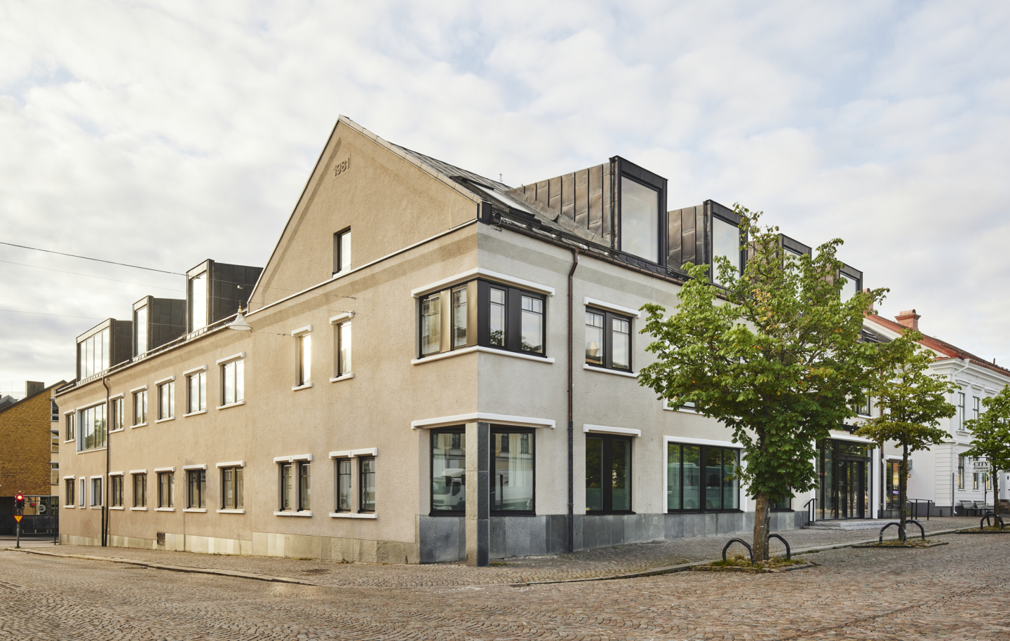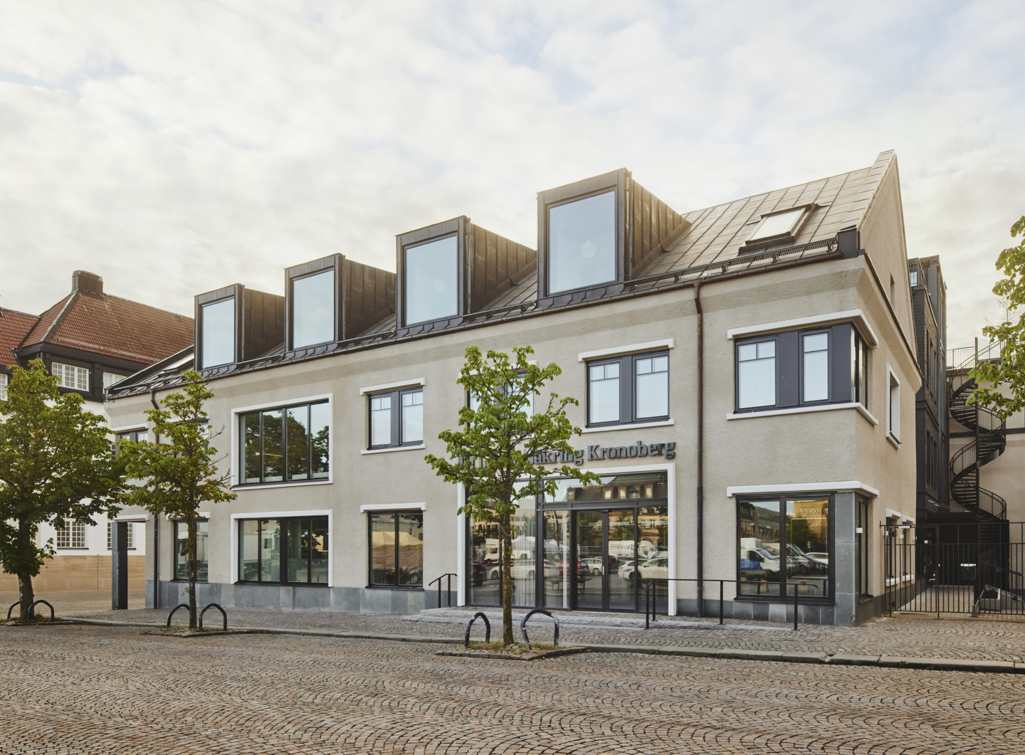 • Redeveloping a dated 1980s building in a sensitive historic context next to Växjö Cathedral.