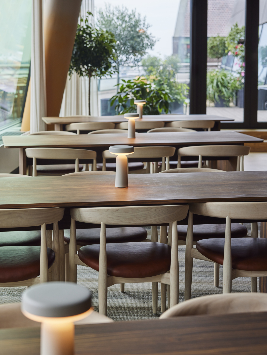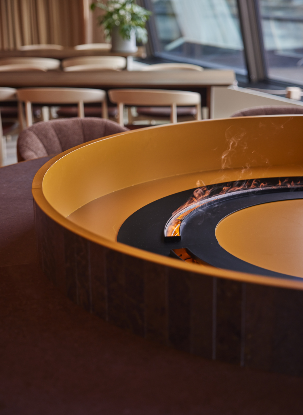 • The layout introduced central hubs, flexible rooms, and a large lounge connected to the terrace, while reusing much of the existing furniture and interior to ensure both sustainability and efficiency.